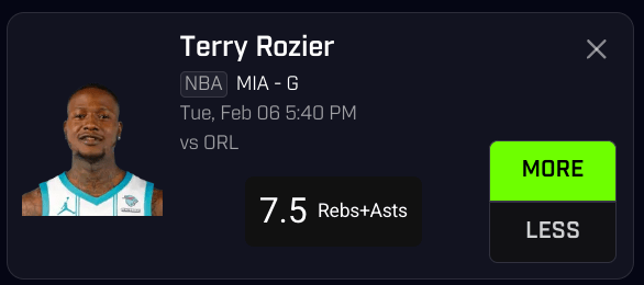 Terry Rozier OVER 7.5 Rebounds + Assists